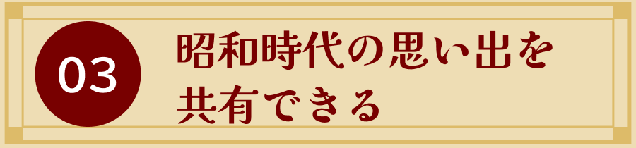 懐かしい風景や当時の文化、流行などについて語り合い、昔ながらの良さを再発見することができます。