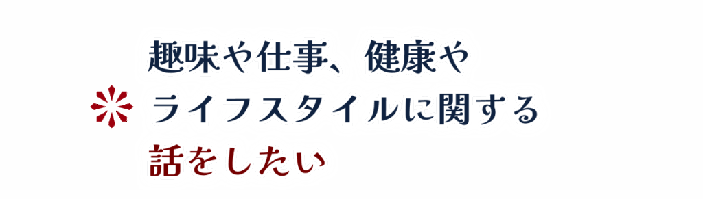 同世代の方々が出会い、趣味や仕事、健康やライフスタイルについて情報を共有できる場所となっています。