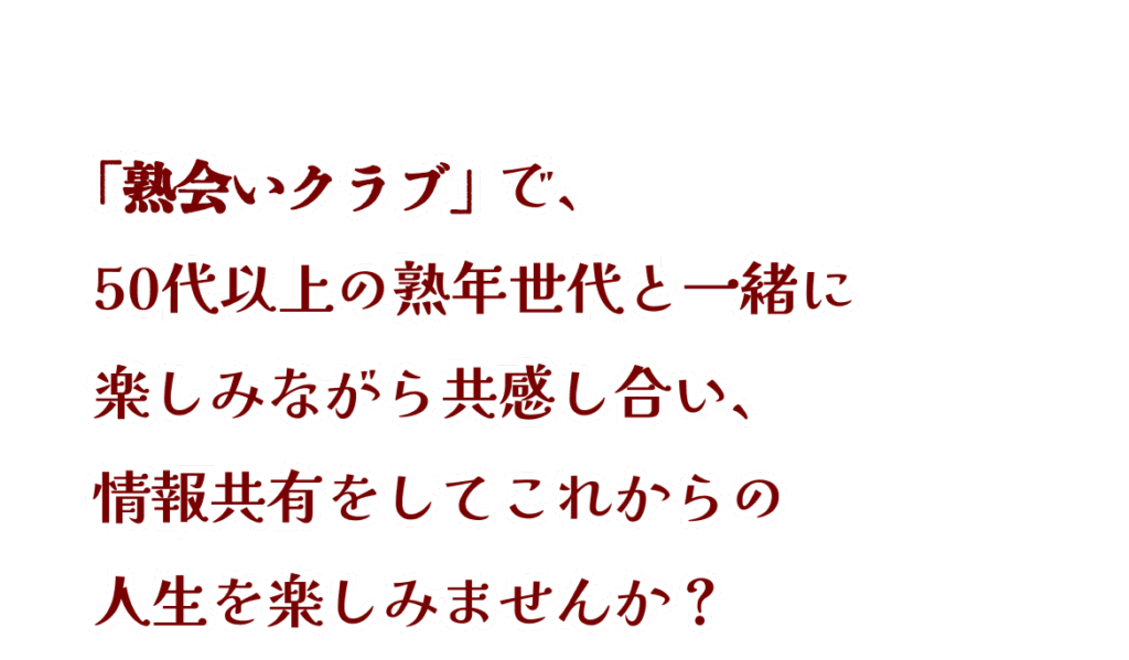 熟会いクラブは、50代以上の熟年層に特化した情報共有サイトです。